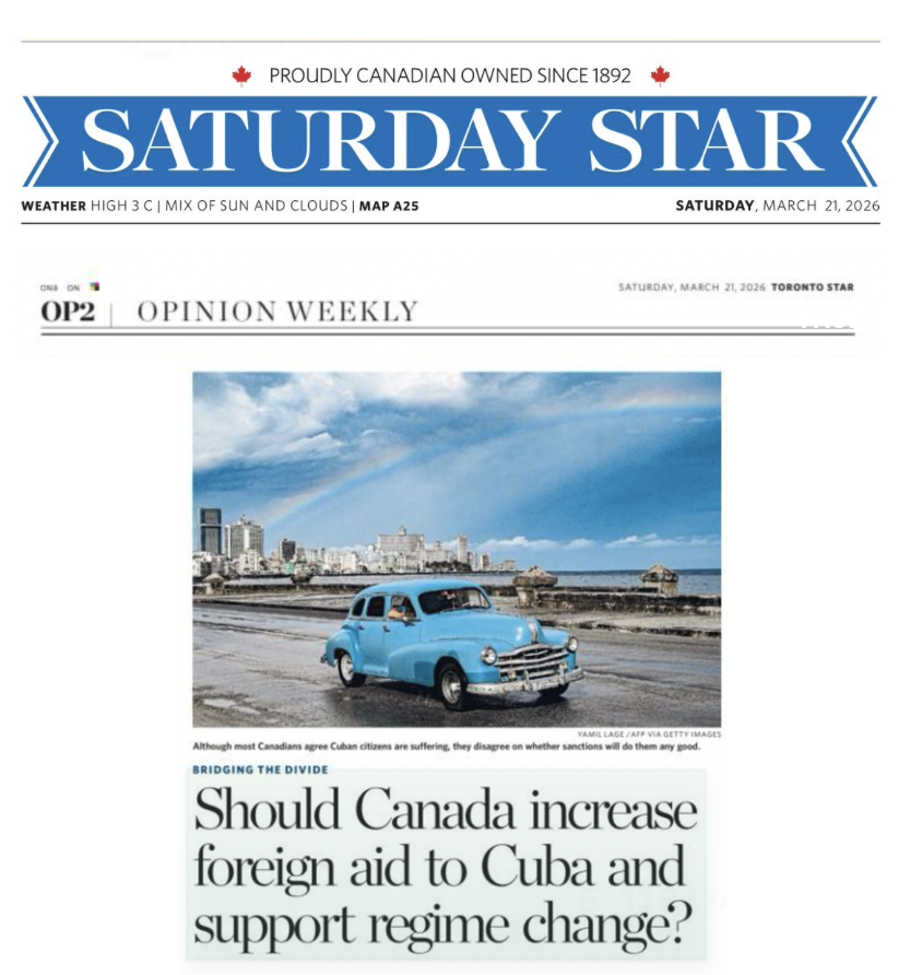 On March 21, 2026, the Toronto Star published a debate in which Michael Lima, Director of Democratic Spaces, participated, addressing Canada’s foreign aid to Cuba. The central argument he advanced is that a coherent Canadian policy on Cuba must do two things: deliver real humanitarian aid directly to the people, not the regime, and recognize that the root cause of the crisis lies in the system itself. He also emphasized that the Cuban system is characterized by leaders placing power above people, stripping citizens of autonomy and leaving them politically defenseless.