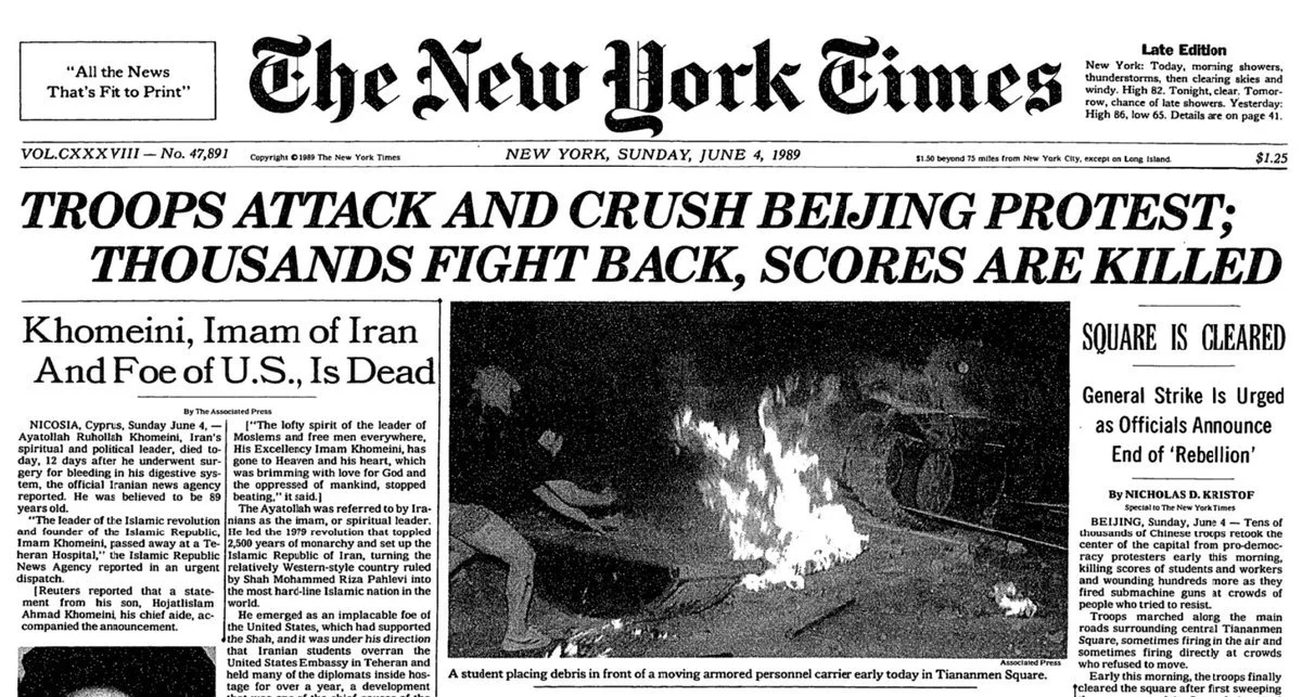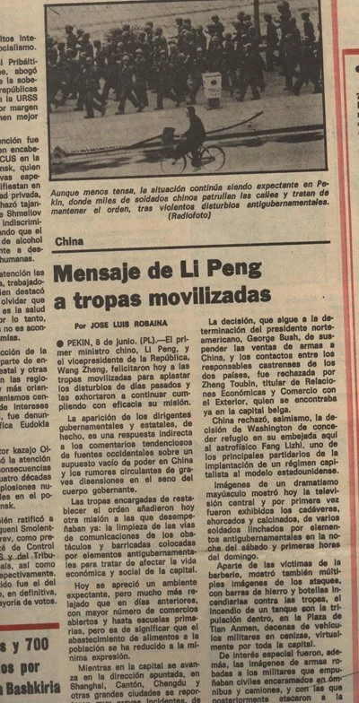 The Official Newspaper of the Cuban Communist Party parroting the CCP propaganda justifying the Tiananmen Square Massacre on June 4. 1989.