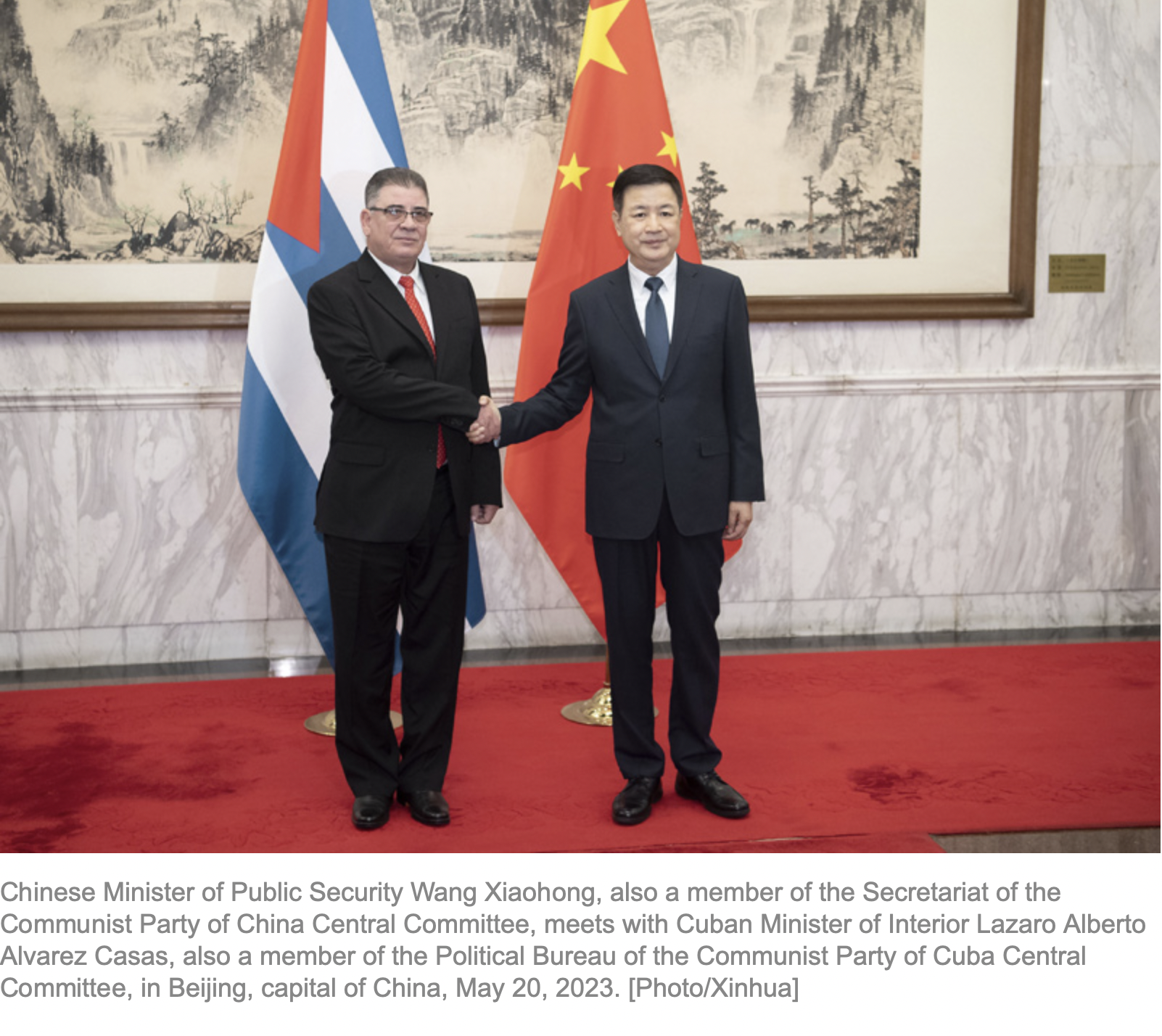 The meeting above between the Chief of Police in China and the Cuban regime’s Minister of Interior is an example of how dictatorships exchange information to become more effective oppressors of their people.Photo from Muy 20, 2023. China’s Chief of Police Wang Xiaohong meets Cuba’s Interior Minister Lazaro Alberto Alvarez Casas. Both perpetrators discuss ways to crackdown on pro democracy movement. According to the official news report from the State Council of he People’s Republic of Cina, “The two sides should strengthen cooperation in preventing the "color revolution," offering security support to the Belt and Road Initiative, combating transnational crimes and building law enforcement capacity, and work together to build a China-Cuba community with a shared future, Wang added.”