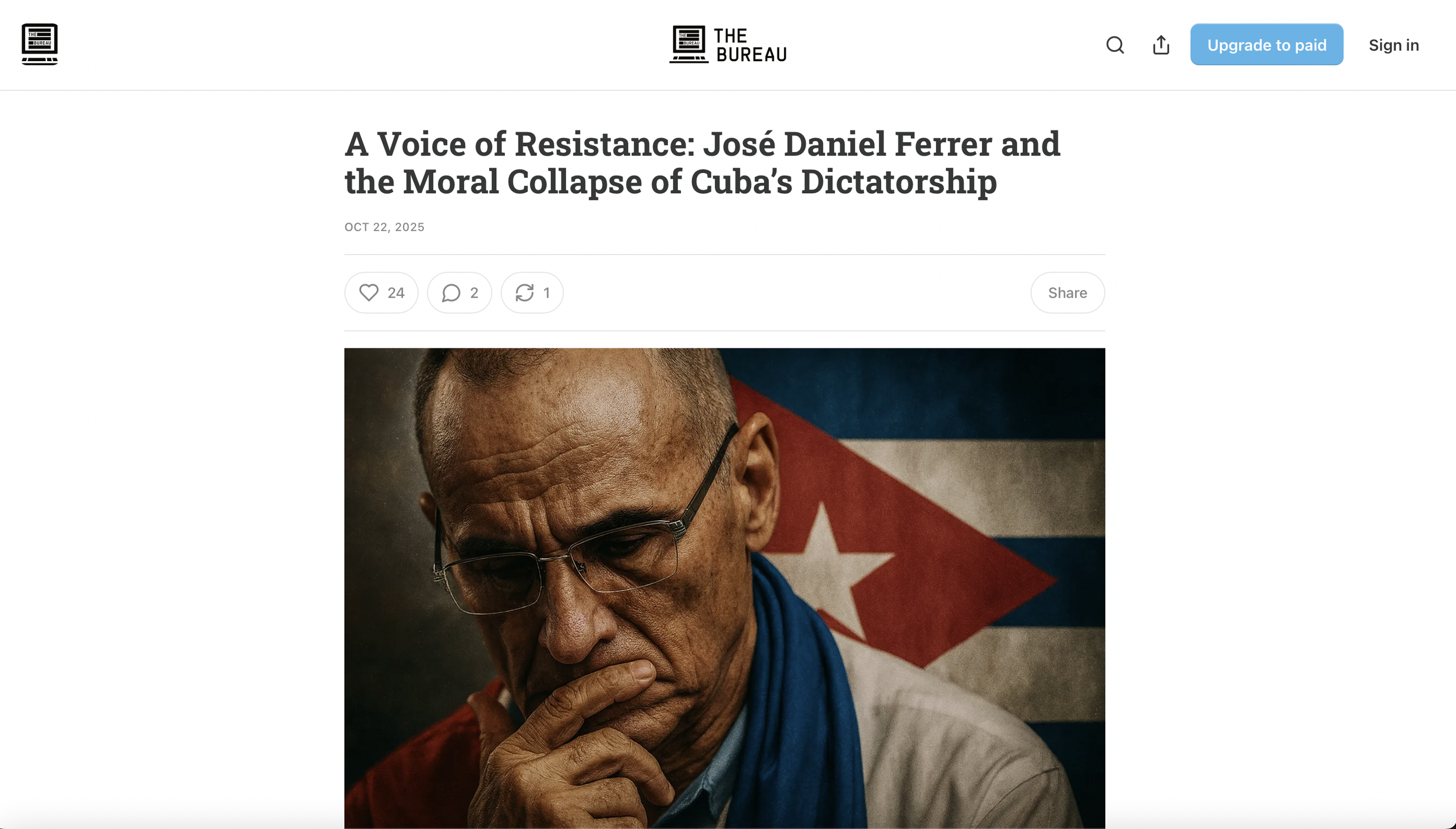 Michael Lima, Director of Democratic Spaces, published the article “A Voice of Resistance: José Daniel Ferrer and the Moral Collapse of Cuba’s Dictatorship” in The Bureau News on October 22, 2025.